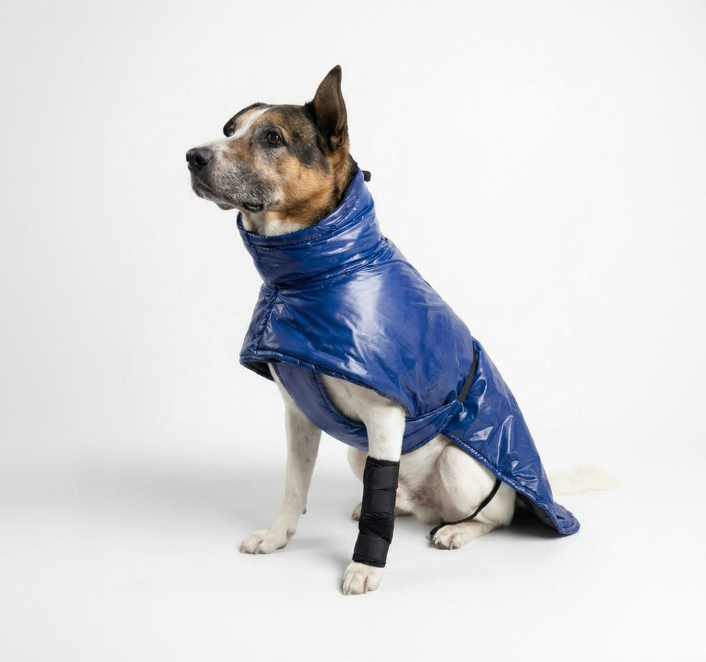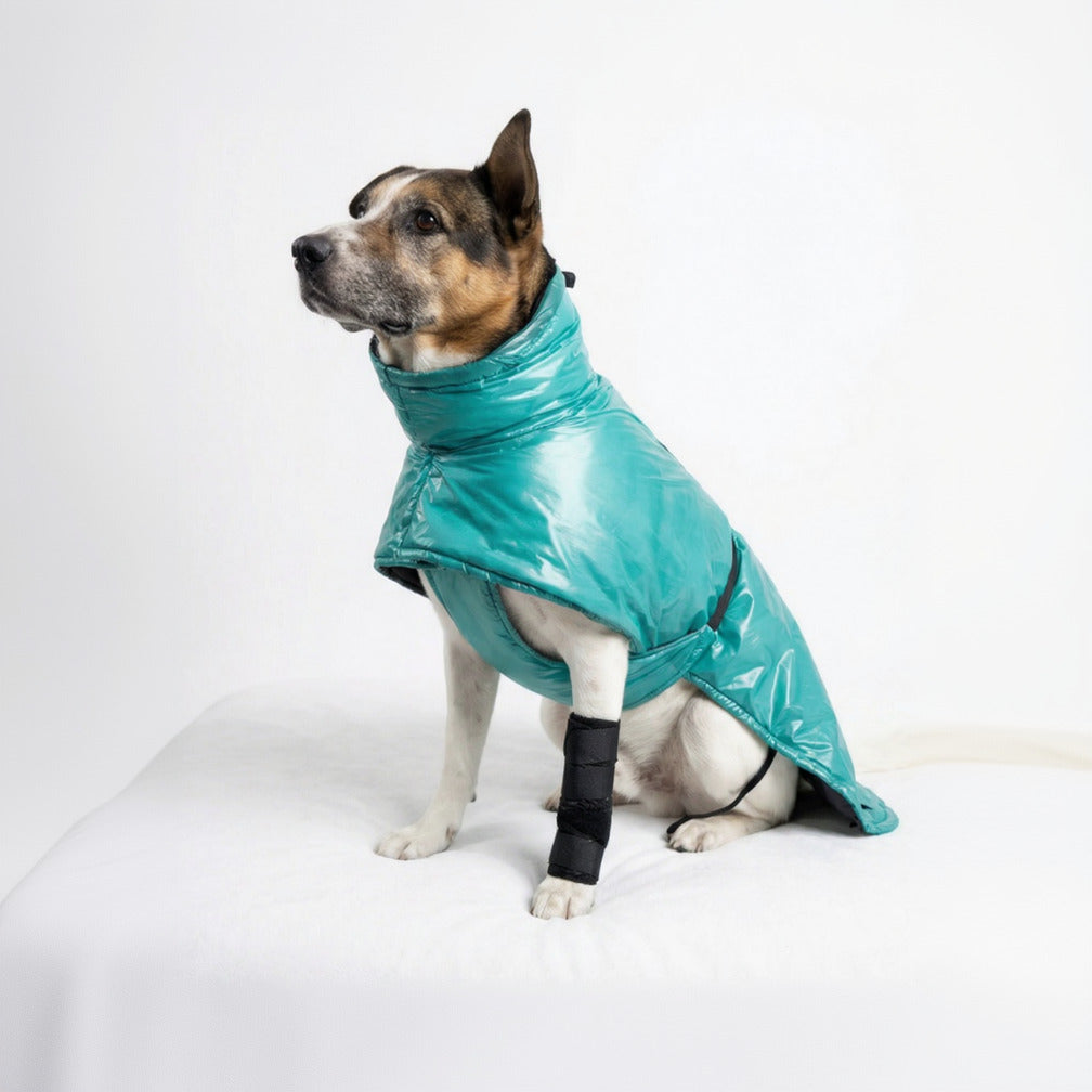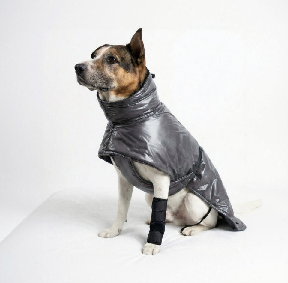 We chose synthetic insulation over down for one reason: dogs get wet. Synthetic fill maintains its loft and warmth even when damp. This is critical for rain, snow, creek crossings, or morning dew.